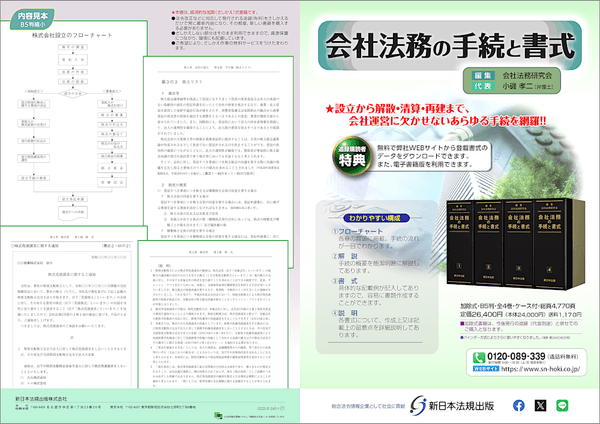 新日本法規出版株式会社(所在地:愛知県名古屋市中区、代表取締役社長:河合誠一郎)は、「会社法務の手続と書式」(編集:会社法務研究会 代表:小磯孝二(弁護士))を増刷し、2025年8月8日(金)に入荷いたしました。