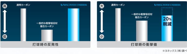 ■「VIBSLAYER CARBON(バイブスレイヤーカーボン)」で反発性+打球衝撃カット