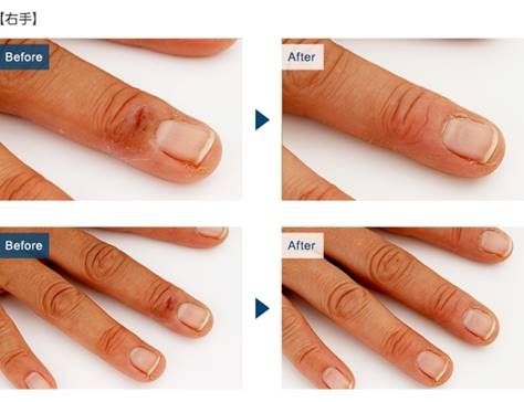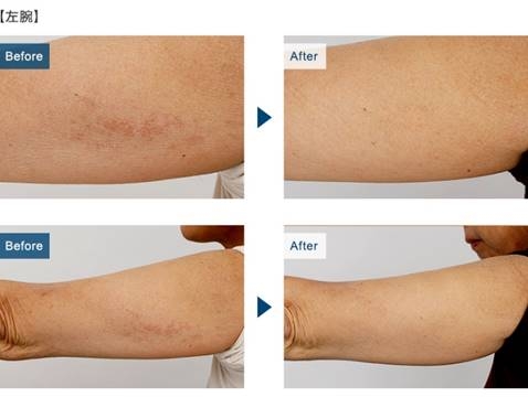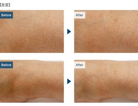 天然ミネラルウォーター「日田天領水」を経口摂取した摂取群の被検者について、手、腕、足、肩などの皮膚症状を目視診察したところ、一部の被検者に皮膚炎や皮膚の乾燥症状の改善が見られました。