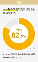 また、この臨床実験の結果をもって医師115名を対象にアンケート調査を行ったところ、81.7%が「アトピーへの有用性が期待でき、積極的に摂りたい水だ」と回答したほか、角質水分量の改善、かゆみや乾燥感の改善にも8割以上が「効果を期待できる」と回答。「日田天領水」に対する期待の高さを感じられる結果となりました。
