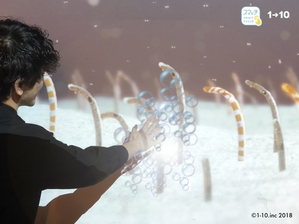 株式会社ワントゥーテン(所在地:京都市、代表取締役社長:澤邊芳明、以下ワントゥーテン)は、11月9日〜11日にすみだ水族館で行われる「ゆらゆらチンアナゴまつり2018」(※1)において、あらゆる面をタッチ画面化することができるインタラクティブコンテンツシステム「スマッチ(Smart Touch System)」を使用した、チンアナゴの暮らしに親しめるコンテンツ「ひょっこりチンアナゴさん」を展示いたします。