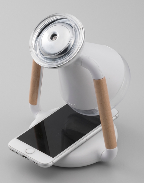 Humi+は、加湿とスマートフォンのワイヤレス充電が同時にできる卓上加湿器です。