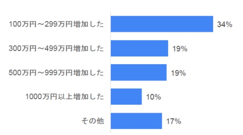 ■「キャリア面でポジィティブな変化あり」と回答したBOND-BBT MBA修了生のうち82%の年収が上がっていたことが分かった。「100万円~299万円増加」が最も多く、「1000万円以上増加」した修了生が1割いた。年収が増加した修了生の平均増加額は約400万円であった。