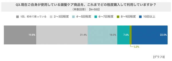 頭髪ケア商品の購入頻度に関する設問では、80.2%が2回以上使用していることが明らかになりました。
