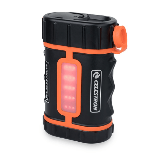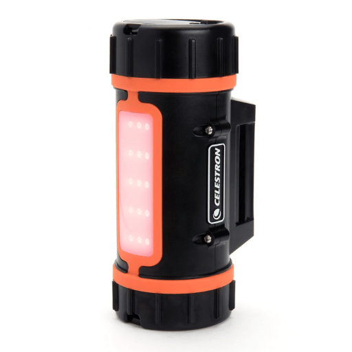 本体に搭載されたLEDライトパネルにより、赤色または白色のライトとしても使用できます。特に赤色ライトは、暗闇でも目への刺激が少ないため天体観測時に大変便利です。輝度は各色2段階の調整が可能です。