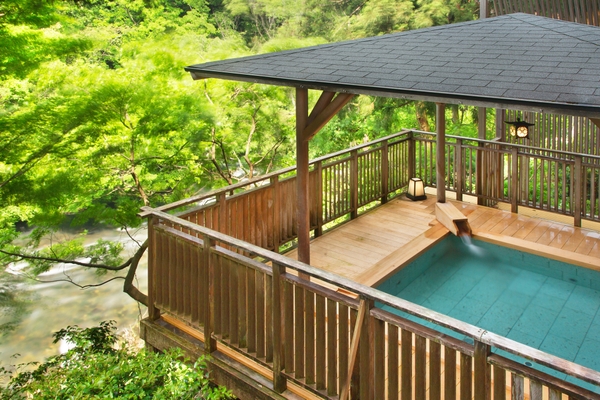 北陸随一の渓谷美と謳われる鶴仙渓、大聖寺川沿いに佇む加賀コンシャスな湯宿。加賀五彩を基調としたインテリア、山中塗りや九谷焼、加賀水引ランプシェードなどの伝統工芸品を配し加賀の上質な文化を感じる設えです。