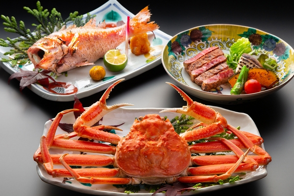 【石川県 山中温泉・吉祥やまなか】~選べる秋の北陸グルメ×和牛ステーキ~ のどぐろ姿焼き、姿ズワイ蟹、贅沢な逸品でプレミアムな時間
