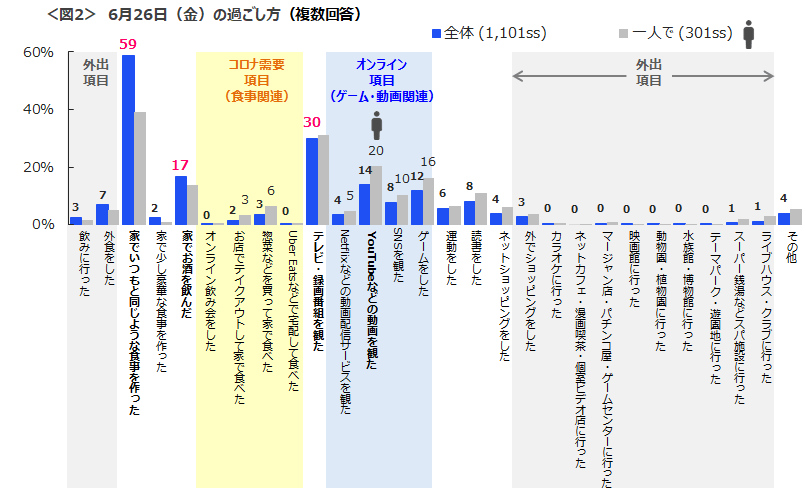 “華金”は「家族で」が半数超 娯楽系の外出おさえ、まだまだステイホームの意識は継続か