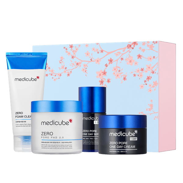 メディキューブの人気商品であるゼロ毛穴シリーズ4種が入ったセットとして、春を感じさせる華やかなピンクエディションが登場! 春の晴れた日のような空と満開の桜を思わせるピンクとブルーでデザインしたパッケージが特徴のスペシャル企画セットです。
