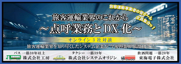 【工房×システムオリジン×東海電子】合同無料ウェブセミナー「旅客運輸業界のこれから~点呼業務とDX化~」7月8日(木)開催のお知らせ