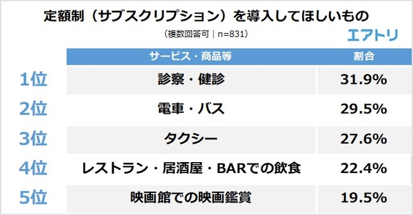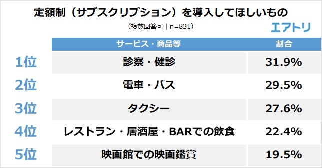 ~エアトリが「定額制(サブスクリプション)」に関するアンケート調査を実施~