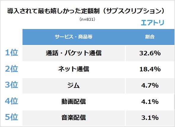 調査4:導入されて最も嬉しかった定額制(サブスクリプション)は何ですか?