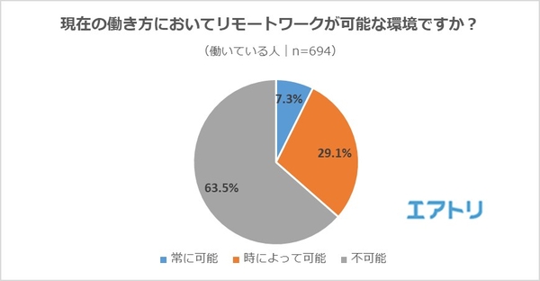 ―「色々な場所に住んでみたい」人は約半数の一方で、63.5%もの人がリモートワークは「不可能」と回答しました。