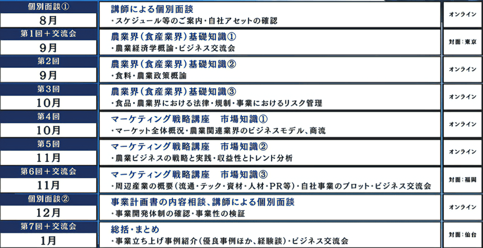 ・対面、オンラインを交えた講義 全7回(農業界知識・マーケティング戦略)
