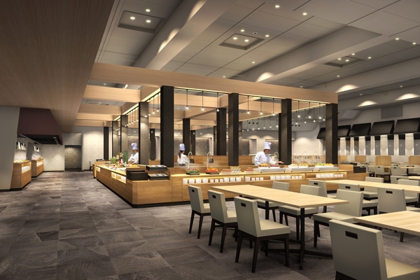 大江戸温泉物語自慢のグルメバイキングが楽しめるレストランは、高天井の開放感ある空間を生かした上質なデザインで、旧ホテルニュー塩原のレストランをご存知の方にはもちろん、初めて訪れる方にも新鮮な驚きとワクワクを感じていただけます。