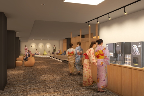 さらに、湯上り後にリラックスいただけるスペースとして「湯上り処」を新設いたします。無料のソフトドリンクや冷えた生ビール、アイスキャンディー片手にほっとひと息つける空間です。
