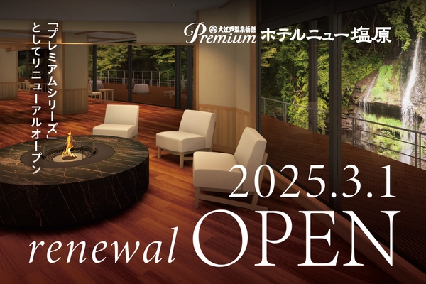 2025年3月1日にリニューアルオープンする「大江戸温泉物語Premium ホテルニュー塩原」(以下、Premium ホテルニュー塩原)の宿泊予約を12月2日(月)より開始いたしました。「大江戸温泉物語Premium」シリーズは大江戸温泉物語グループ全体で20施設となります。