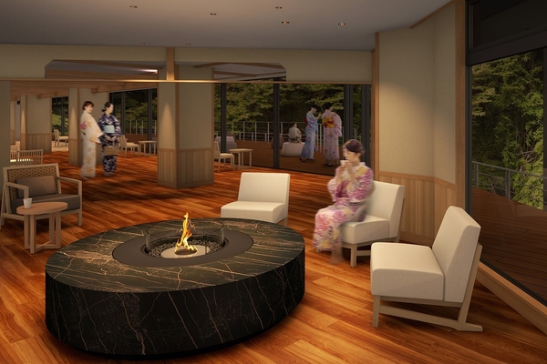 リニューアルの目玉として、大江戸温泉物語Premiumシリーズならではのおもてなしスペース「プレミアムラウンジ」を新設いたします。館内で最も景観が良い場所に位置し、七絃の滝の雄大な景色を望めるウッドデッキを接しています。四季折々の表情を楽しめるロケーションは、何度お越しいただいても飽きない、贅沢なひと時をご堪能いただけます。