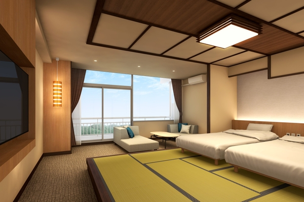 一部の客室を人気の和モダンルームにリノベーションいたします。就寝時はベッドの利便性を、くつろぎ時間は畳で思いきり手足を伸ばせる快適性を兼ね備えています。