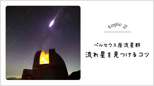 ・TOPIC2 ペルセウス座流星群 流れ星を見つけるコツ