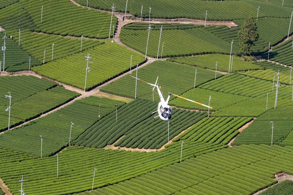 新緑の茶畑を空から楽しむ「京都宇治・茶畑 ヘリクルーズ」