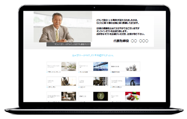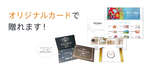 ギフト内容は自由に設計でき、自社商品やお取引先のギフトもお取扱いが可能です。