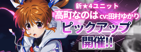 「期間限定 新規実装☆4ピックアップ 高町なのは《レイジングハートCX》」では新登場の☆4高町なのは《レイジングハートCX》の提供割合が同じクラスの他のユニットよりもアップします。