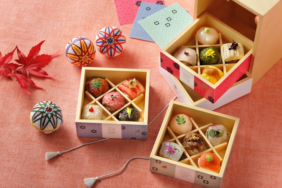 全国に展開する星野リゾートの温泉旅館ブランド「界」の全施設に、2020年9月1日、日本旅をテーマにした界のお夜食「ご当地てまり寿司アソート」が登場します。鰻の蒲焼や野沢菜漬けなど、国内にある各施設を象徴する15種類の手毬寿司を木箱に詰めました。引き出しを開けると色とりどりの手毬寿司が見えてくる、宝石箱を開ける時のようなワクワク感が味わえます。また、秋の夜長の風情を感じられるよう、紅葉のライトアップや、芸術の秋をテーマとした設えなど、手毬寿司を食べるシーンの演出にもこだわりました。手毬寿司をつまむことで、日本旅を巡りながら秋の夜長を贅沢に過ごすことができます。