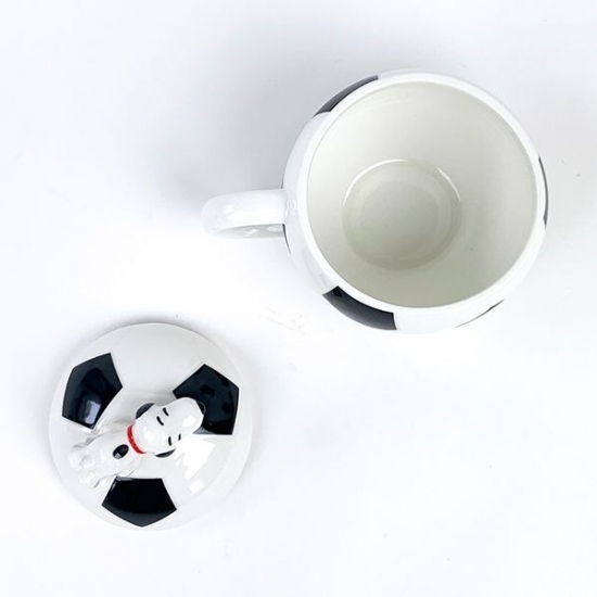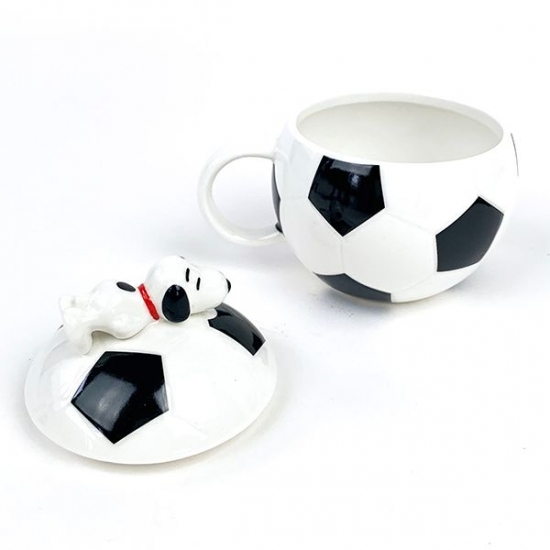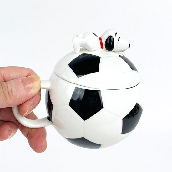 コロンと真ん丸なフォルムにフタがついていて、見た目はサッカーボールそのもの♡フタの上にはスヌーピーのフィギュアもついていてかわいいんです。