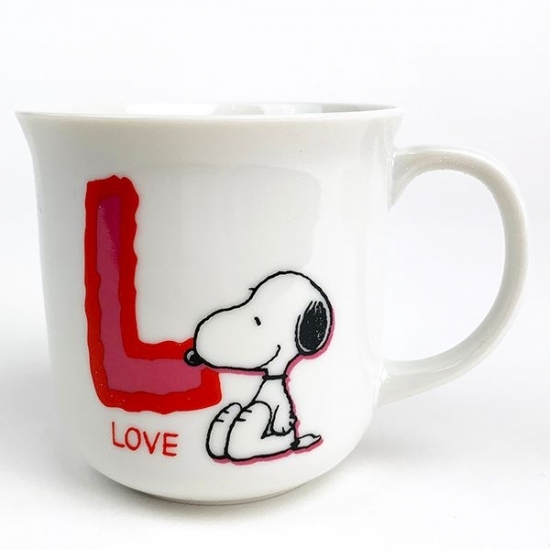 スヌーピーのマグカップには、男性へのプレゼントにピッタリなアイテムが他にもたくさん♪イニシャルマグも人気です♡LOVEのLをモチーフにしたタイプです。