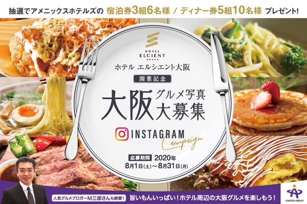 株式会社関電アメニックスが運営する「ホテル エルシエント大阪」が2020年8月1日(土)の開業を記念し、ホテル周辺飲食店を対象とした「お気に入り大阪グルメ」写真投稿キャンペーンを開催します。