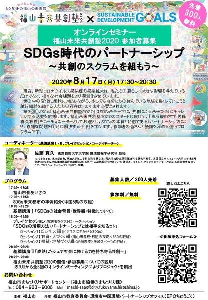 広島県福山市では,「幸せあふれる30年後の福山の未来図」に描かれたより良い未来社会の実現に向け,子育て環境の充実や都市機能の整備等に取り組んでいるほか,未来づくりに意欲のある人たちが集い,対話を通じたチームづくりを行いながら自らアクションにつなげる「福山未来共創塾」を一昨年から開催しています。