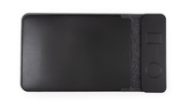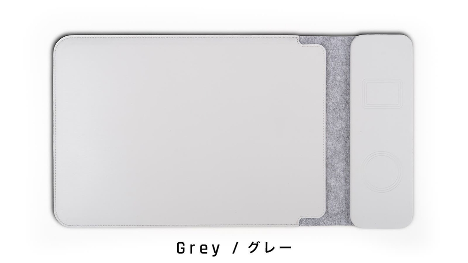 前回のMakuake(マクアケ)でのプロジェクトDeskPro(デスクプロ)では、デスクトップパソコンのデスクマットでしたが、今回はノートパソコンおよびタブレット用スリーブケースに前回好評だったワイヤレス充電機能も付いた商品となります。