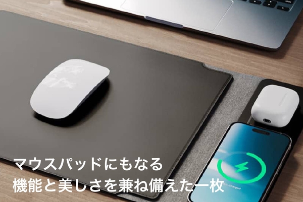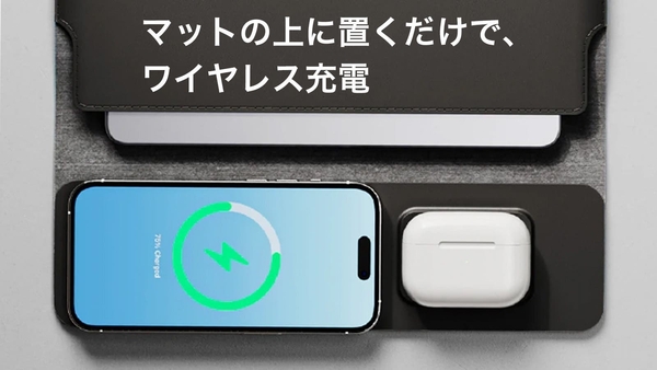 また、ケースそのものがマウスパッドとしても使えるため、PCの横にスマホを自然に置くだけで充電ポジションに。無駄を削ぎ落としたミニマルなデザインとシームレスな体験が、NoteProの大きな魅力の一つです。