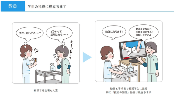 ・看護手順書と連動した最新の技術映像を看護の専門家チームが制作