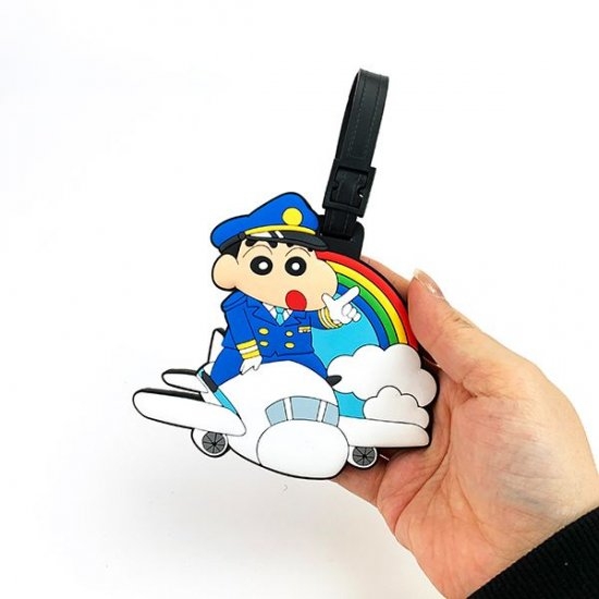 続いてご紹介するのは、クレヨンしんちゃんのラバーネームタグです。飛行機に乗って空を自由に飛び回るしんちゃんデザイン。パイロットの格好をしていてカッコいいですね♪