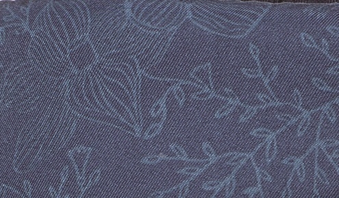 ・人気のブルーベースの生地にボタニカルプリントがアクセント。