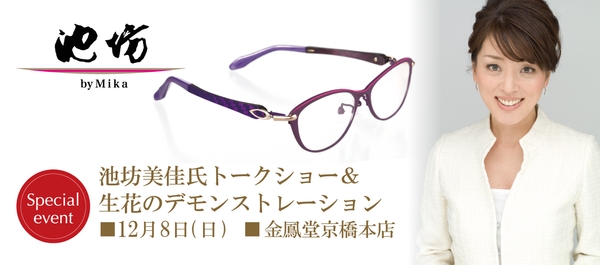 明治20年創業、今年で132年の歴史を持つ眼鏡店・株式会社金鳳堂(東京都港区、代表取締役社長:恒吉裕司)は、12月8日(日)・金鳳堂京橋本店(東京都中央区)の移転三周年を記念して、華道家の池坊美佳氏がプロデュースするアイウェアブランド〈池坊 by Mika〉の「新ブランドご紹介イベント」を開催します。華道を通して「本物の美」を追及してきた美佳氏が手がける、華やかな色彩が美しいメガネフレームをご紹介します。