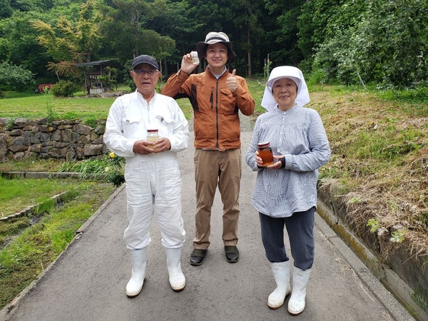 青森の養蜂家・太田さん夫妻と。今年のあかしあ蜂蜜は会心の出来とのこと。