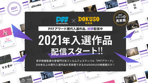 インディーズ映画の見放題サービスを展開するDOKUSO映画館(ドクソーエイガカン 本社:東京都豊島区 代表取締役:⽟井 雄⼤)は2022年3月4日(金)より、PFFアワード2021年入選作品13本を一挙配信します。