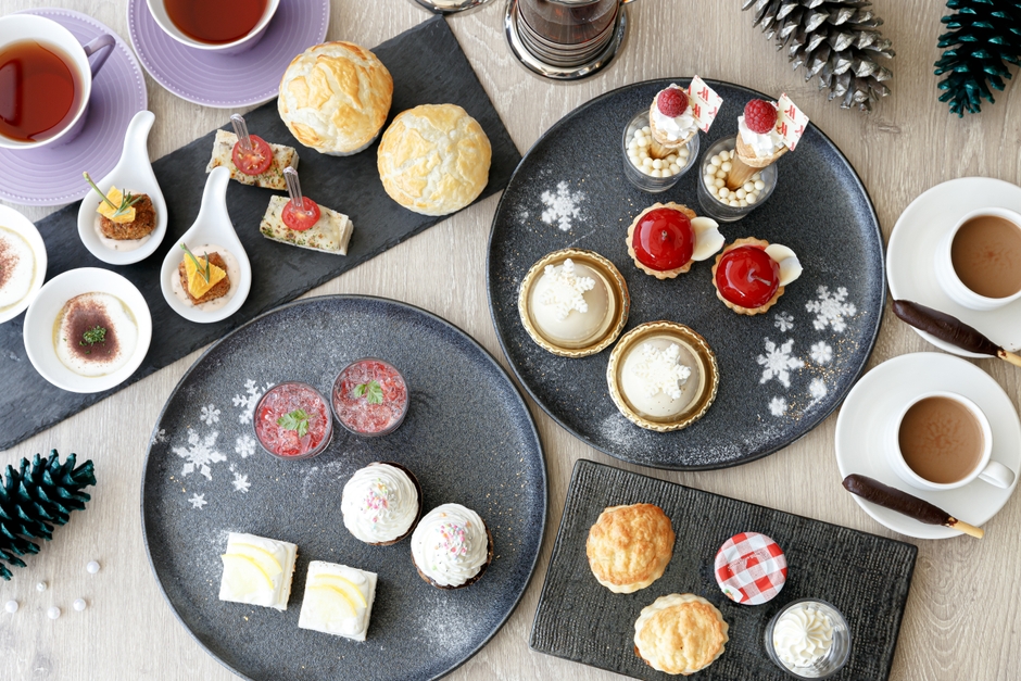 冬りんごを丸ごと使用した「フイユタージュオーポンヌ」は、カスタードクリームが包まれたパイに、りんごのコンポートとチョコレートを重ねた贅沢な味わいのアップルパイです。濃厚なチョコレートにジンジャーとシナモンがふんわり香る「ショコラショー エピス」など、スイーツは全8種類。じっくりと煮込んだ「近江鶏と林檎のパイ包み焼き赤ワイン風味」や、ほっこり甘い「牛蒡ブルーテ」など体温まる4種のセイボリー(軽食)もお楽しみください。また、香りでお選びいただくMighty Leaf社のティーセレクションには、ココチャイルイボスやバニラビーンなど冬にぴったりのアイテムが加わるほか、スペシャリティとして、オーガニックアッサムで作るロイヤルミルクティーを提供。雪化粧した山々の景色を望むホテル最上階で、アフタヌーンティーと香り豊かな紅茶をお楽しみください。