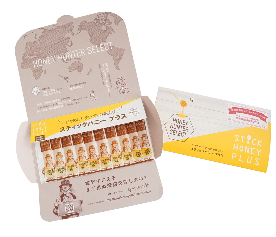 株式会社金市商店(本社:京都市中京区三条通富小路西入中之町21)は、「蜂蜜をより使いやすく」をコンセプトにつくられた、使い切りで持ち運びに便利なスティックハニープラスシリーズより「スティックハニープラス ハニーハンターセレクト産地限定国産蜂蜜2024」を2024年10月16日(水)よりミールミィ京都髙島屋店にて数量限定・先行発売いたします。