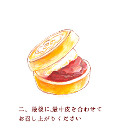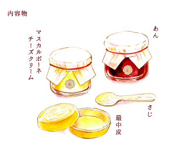 ブルーベリーを練り込んだあんことマスカルポーネチーズを使った自家製クリームを歯切れの良い最中皮に、お好みでサンドしていただく一品です。