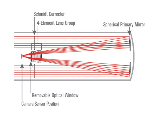 バッフル内に補正レンズ(フラットナーレンズ)を配置することで、セレストロン独自のシュミットカセグレン光学技術をブラッシュアップしたエッジHDシリーズの大口径モデルです。視野周辺まで星を点像で写すことができる高いフラット性能や、色収差やコマ収差などを高いレベルで補正しています。中心解像度を必要とする惑星の拡大撮影はもちろん、特に銀河や星雲・星団などのディープスカイ撮影に優れた威力を発揮します。