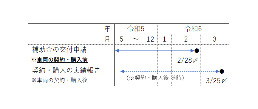 ①補助金の交付申請:令和5年5月1日(月)から令和6年2月28日(水)まで