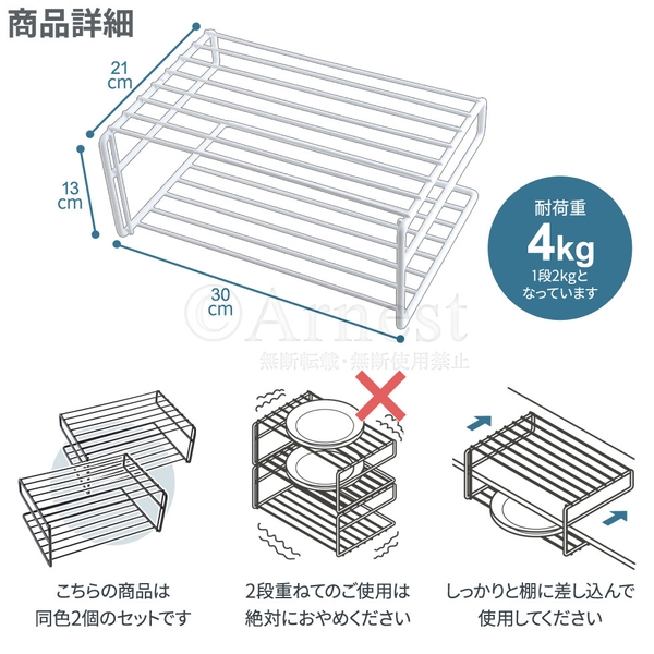 スリムなデザインながら、その耐荷重は約4kg。重い食器でも安定して収納することができます。