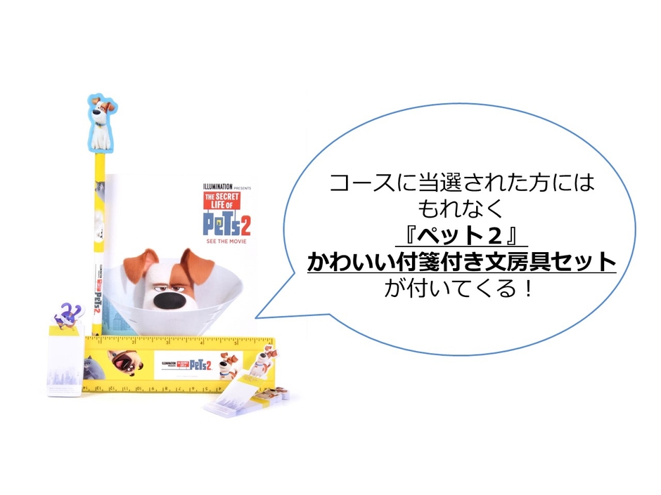 賞品にはミラーレスカメラやカメラ付き自動給餌器など、ペットとの暮らしがより楽しくなる4つのコースをご用意。コース当選者にはもれなく映画『ペット2』の文房具セットをプレゼントします。また、ご希望のコースにはずれてしまった方にも、Wチャンスとして抽選で『ペット2』特製タオルが当たります。ぜひふるってご応募ください!