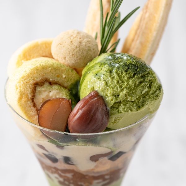 今回発売する第一弾は、SONOKO食品から「米粉ロールケーキ」「カシューナッツクッキー」「ほうじ茶」などを使った『抹茶豆乳パンナコッタパフェ』。すべてオイル・添加物不使用でおつくりしているので、ボリューム満点でお腹大満足ですが低カロリーでカラダにやさしい逸品です。女性パティシエならではの美しい彩りと秋の旬を添えた新しいパフェを、銀座のカフェでぜひお楽しみください。