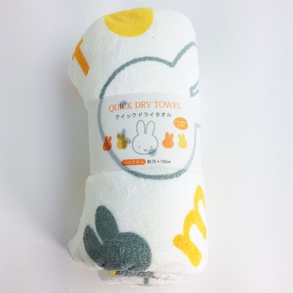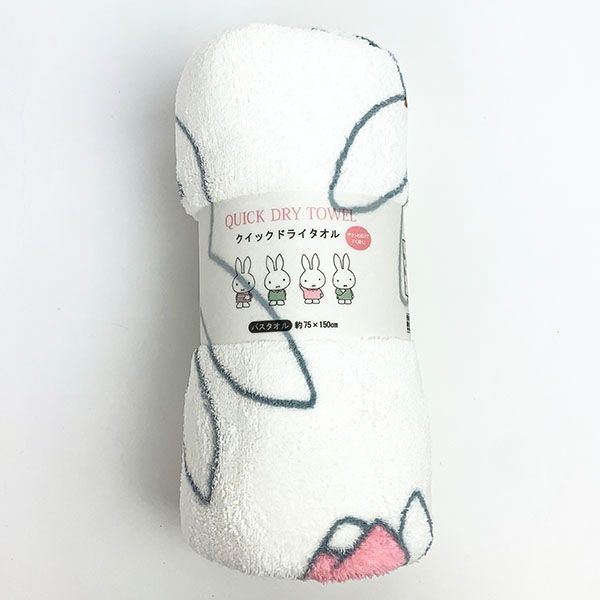 お風呂上がりのほっと一息。やわらかいバスタオルは至福ですよね。こちらのミッフィーのバスタオルは、クイックドライでさらっとした使い心地。吸水性も抜群で機能性にも優れたアイテムです!