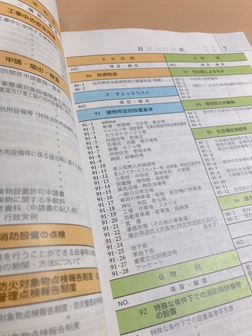 〇畜舎等に係る消防用設備等の特例基準の見直しに伴う所要の補正を行い、消防用設備等の設置届及び着工届の添付図書等に関する運用についての通知を登載するとともに、行政実例の追加等を行いました。また、危険物の規制に関する政令及び危険物の規制に関する規則の改正に基づき、給油取扱所に設置できる建築物の用途拡大等の補正を行いました。